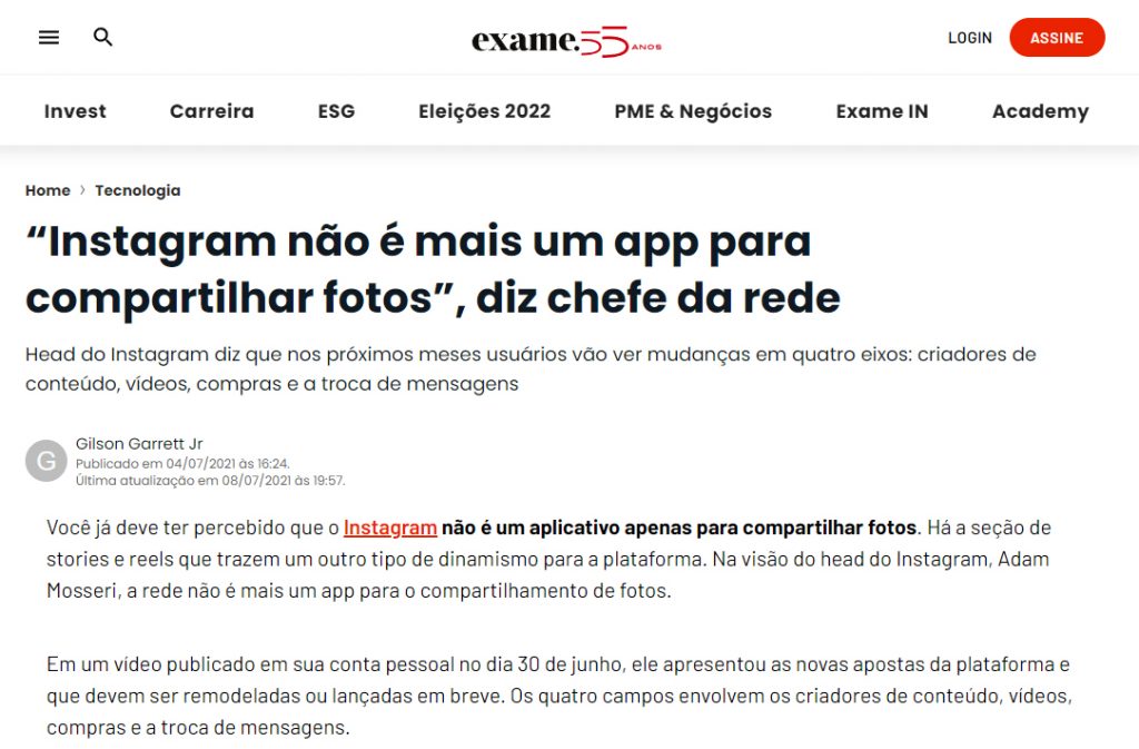 Veja com os seus próprios olhos o que Adam Mosseri, chefe do Instagram, tem a dizer sobre o assunto: